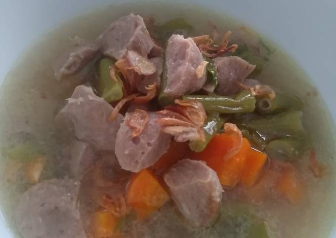 Sop adalah salah satu masakan yang paling sering tersaji di meja makan rumah anda. Di sini ada cara membuat yang jelas dan mudah diikuti. Wortel, kentang, kembang kol, kubis, seledri, daun bawang, 4 siung bawang putih (uleg halus), 650 ml air (boleh tambah/kurangi), 2 sdm minyak goreng, 5 buah bakso, 1/2 sdm gula pasir, 1/4 sdm merica bubuk, 1/3 sdm penyedap (saya royco), secukupnya garam (saya kisar 1/2 sdm). Setelah itu jika rasa sudah enak tambahkan seledri dan daun bawangnya. Bulatkan bakso menggunakan tangan kanan untuk mengambil adonan dan tangan kiri memegang sendok. Selain rasanya yang gurih, sayur sop juga bergizi untuk tubuh. Resep sayur sop bakso menjadi salah satu menu pilihan yang bisa menghangatkan tubuh. Sayur sop bening merupakan salah satu masakan yang gurih dan menyegarkan. Tidak hanya sayuran, kamu juga bisa menambahkan potongan daging, ceker, ataupun bakso. Masak hingga bakso terapung (tanda sudah matang). Berikut akan kami sajikan resep dan cara membuatnya khusus untuk anda. Memiliki kandungan gizi dan nutrisi yang tinggi. Sangat cocok dihidangkan untuk acara makan siang, ditambah dengan lauk ayam goreng atau tahu dan.